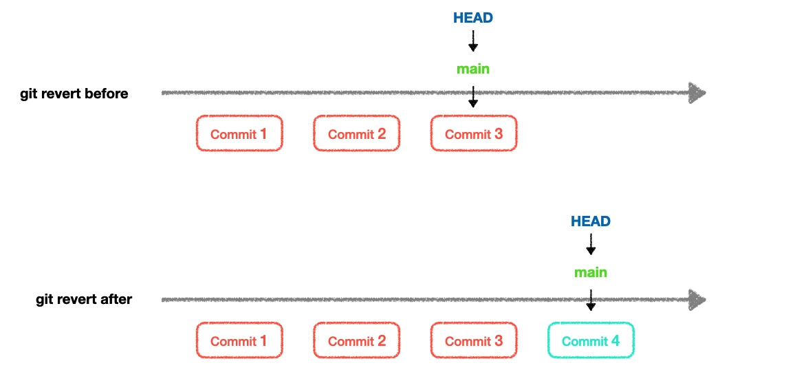 git revert 是用来重做某一个 commit 提交的内容,在我们原始的提交之中,我们会发现分支上面有创建了一个新的 commit 提交,而此时我们对于想重做的某个 commit 提交的内容都不存在了: