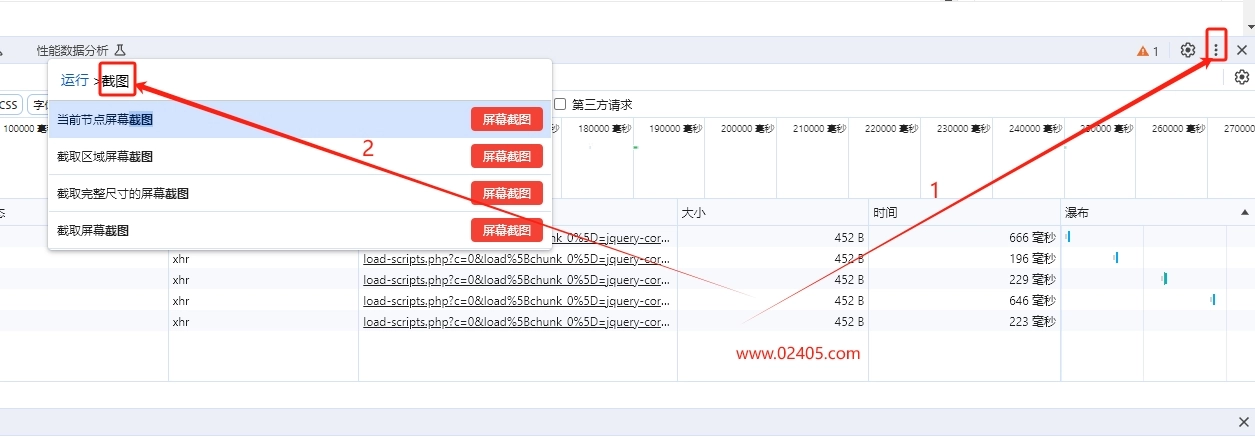 2.点击【自定义和控制DevTools】(就是右侧带三个竖点的图标),然后选择【运行命令】,命令行弹出后您可以在里面输入屏幕截图,将会给您提供四种不同的选项在Chrome上进行屏幕截图。分别为:
