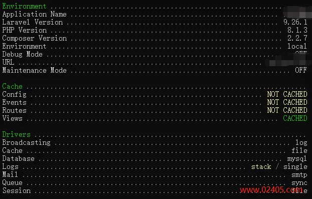 在日常开发中,有时我们需要查看laravel项目环境信息。比如检查laravel版本, php版本, composer版本等等,以往我们需要通过php代码以及查看配置文件等方式逐一检查。在Laravel 9中,提供了新的命令可以一键查询项目环境。