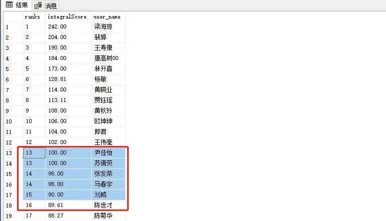 当使用dense_rank函数排名后,就完美避免了排名跳编号的问题。