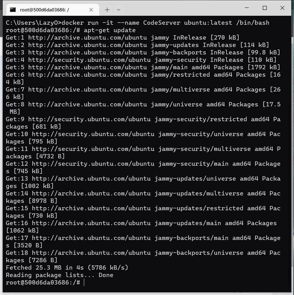 docker run -it --name CodeServer ubuntu:latest /bin/bash