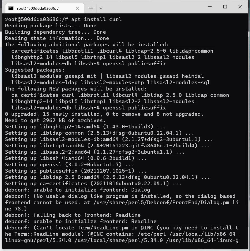 此时终端的目标路径变为了root@xxxxx:/#,输入以下命令安装curl库: