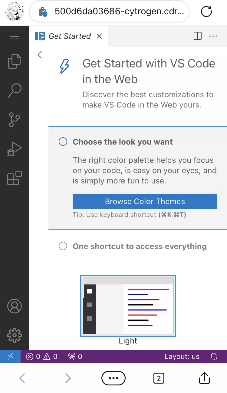 使用浏览器访问该网址,便会看到熟悉的Visual Studio Code。