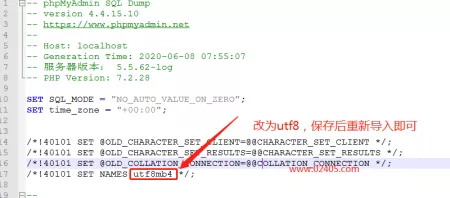 MySQL导入sql文件报错1115 – Unknown character set: utf8mb4,是因为当前mysql版本不支持utf8mb4,解决办法如下: 打开要导入的mysql文件,找到 SET NAMES utf8mb4 改为: SET NAMES utf8 然后重新导入即可。